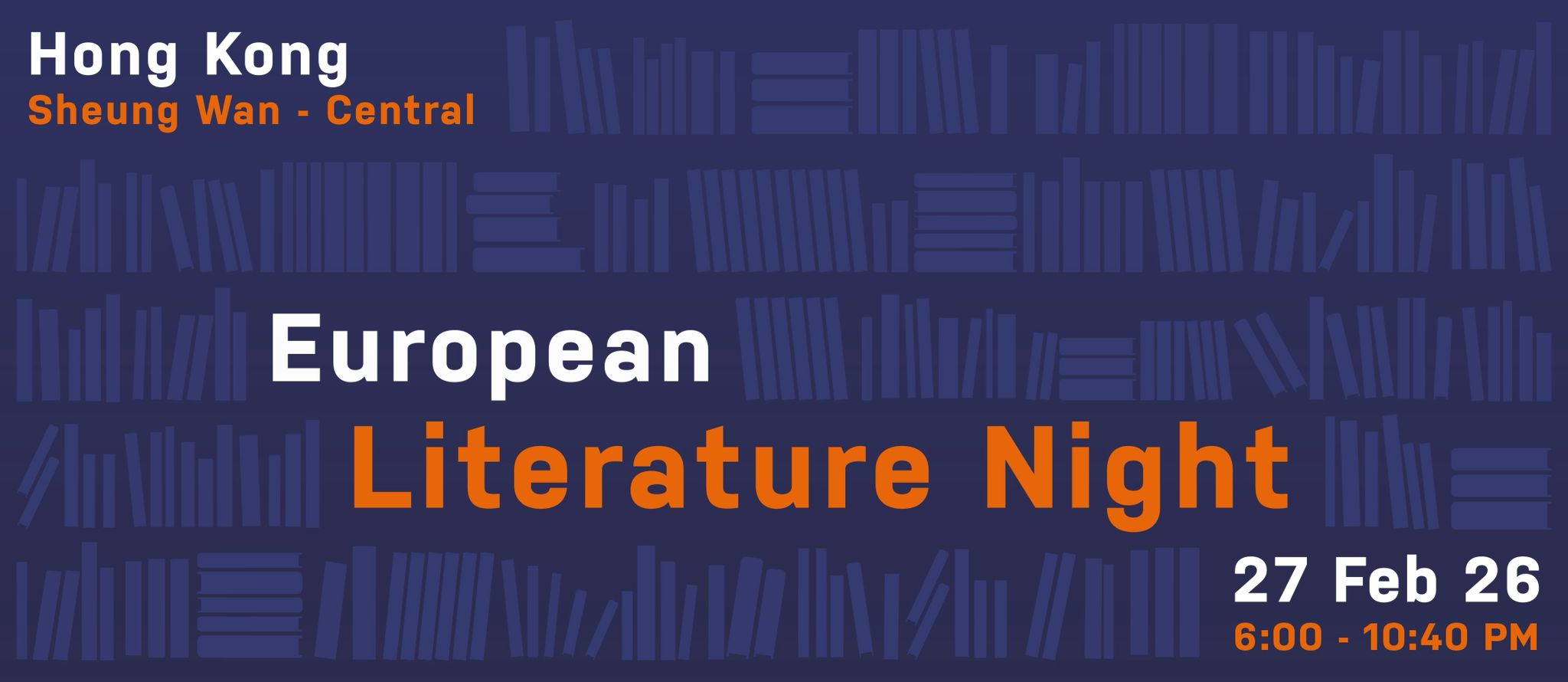 Presented collectively by European consulates and local communities, EUNIC Cluster Hong Kong (Alliance Française, Consulate General of Czechia and Czech Centres, Goethe-Institut, Istituto Italiano di Cultura) proudly welcomes the 3rd edition of European Literature Night, with the support of the Hong Kong International Literary Festival.